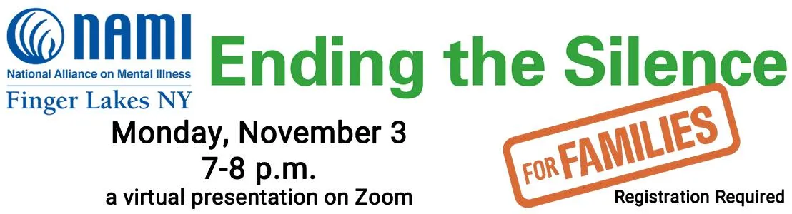 NAMI Ending the Silence for Families is a 1-hour presentation for adults with middle or high school aged youth. Presentation includes warning signs, facts and statistics, how to talk with your child and how to work with school staff.